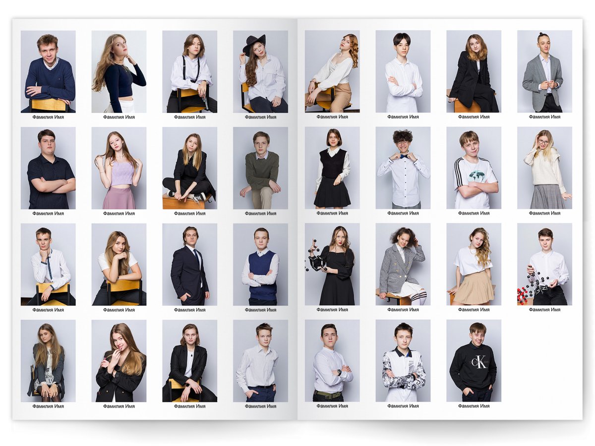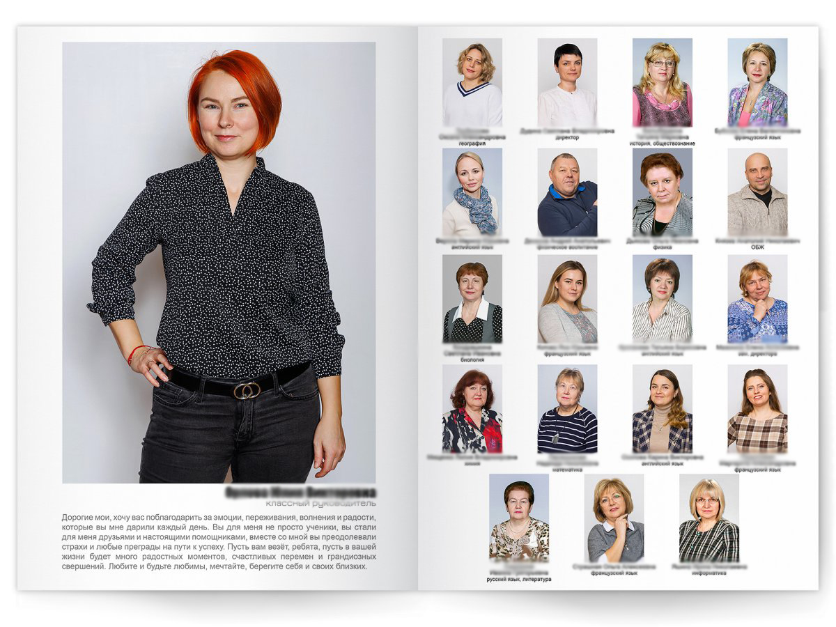 • Портреты всех одноклассников и все учителя, которые придут на съёмку на развороте