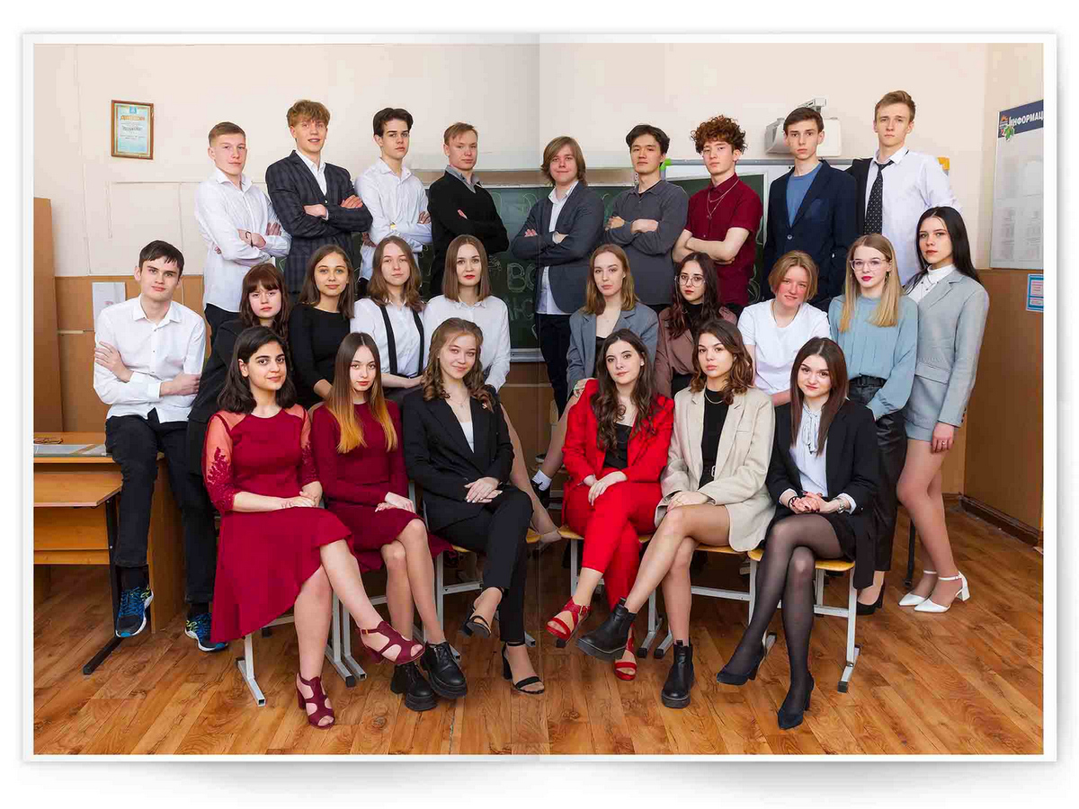 • Можно добавить общее фото всего класса на разворот +350 ₽