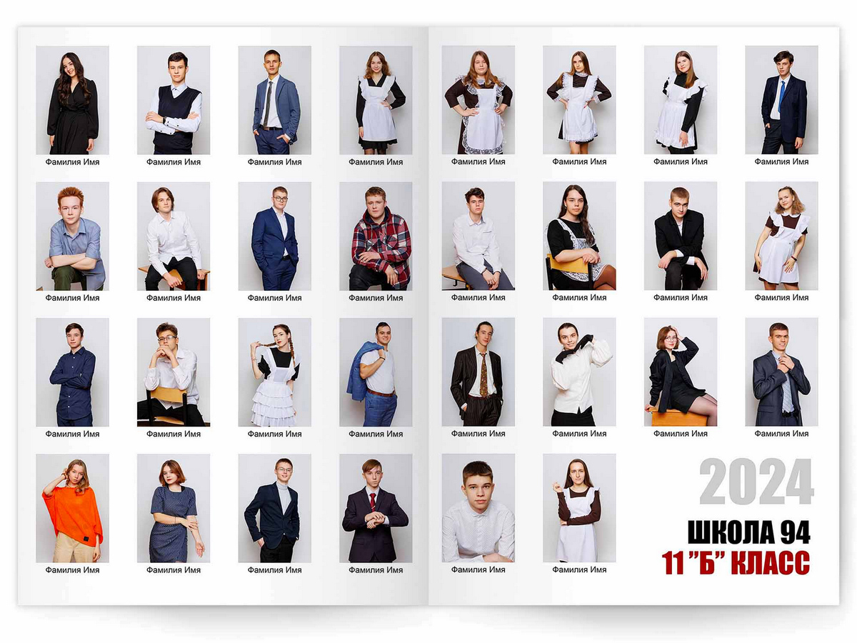 • Портреты всех одноклассников на развороте