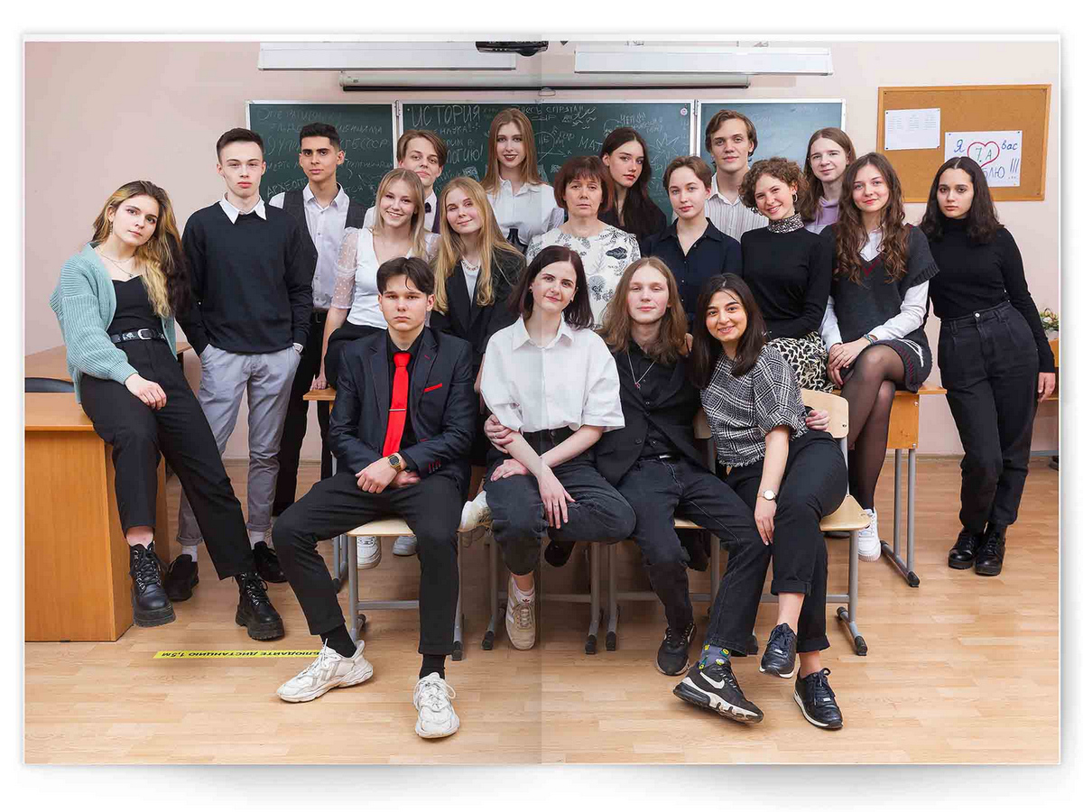 • Портреты всех одноклассников и все учителя, которые придут на съёмку на развороте