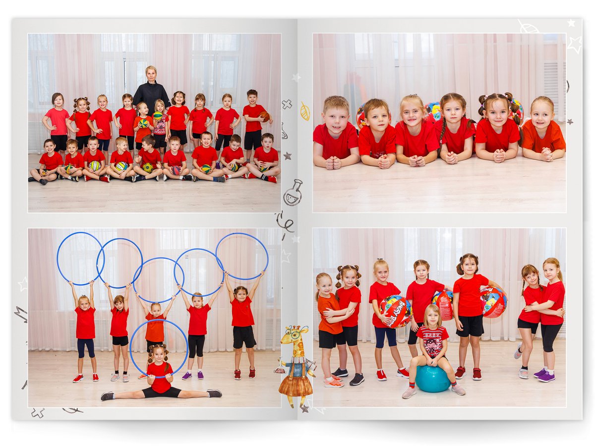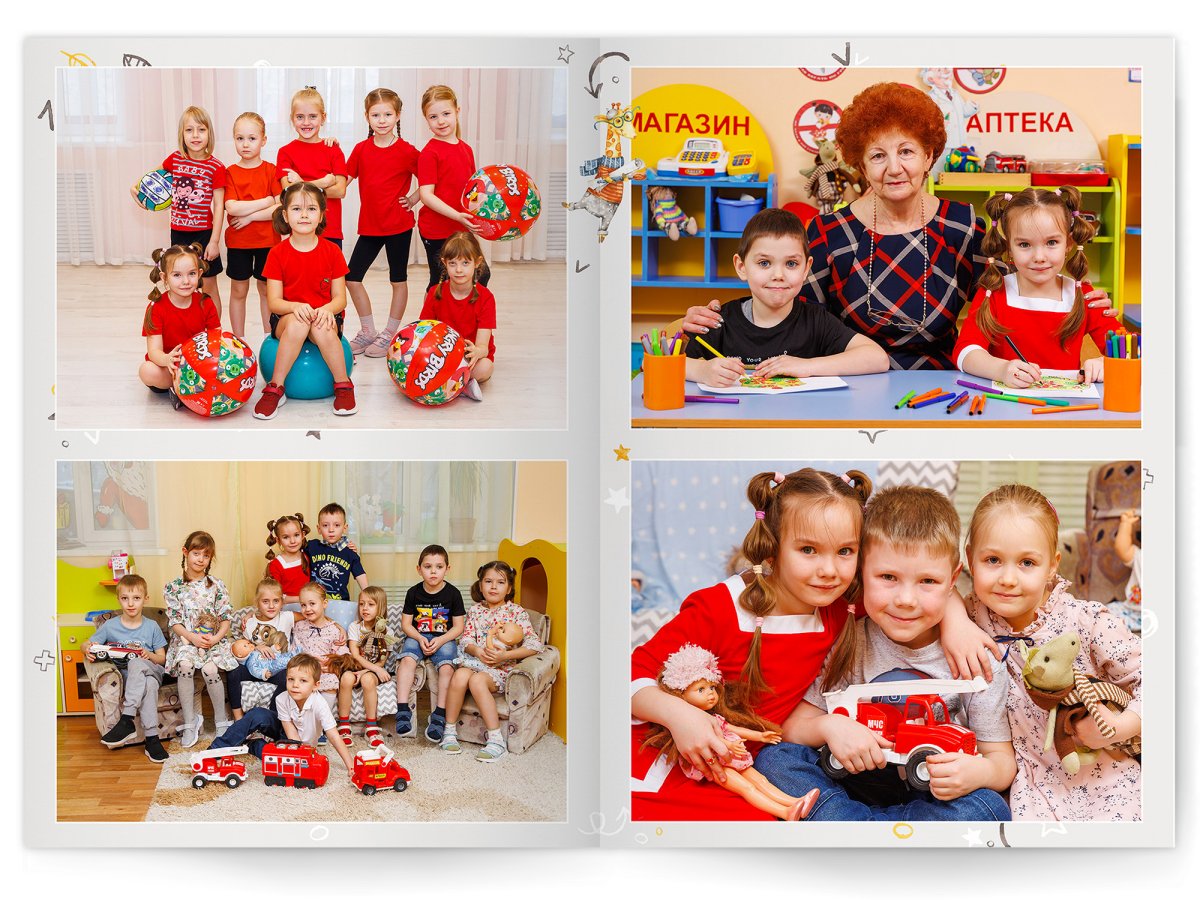 • Портреты всех детей и воспитателей на развороте