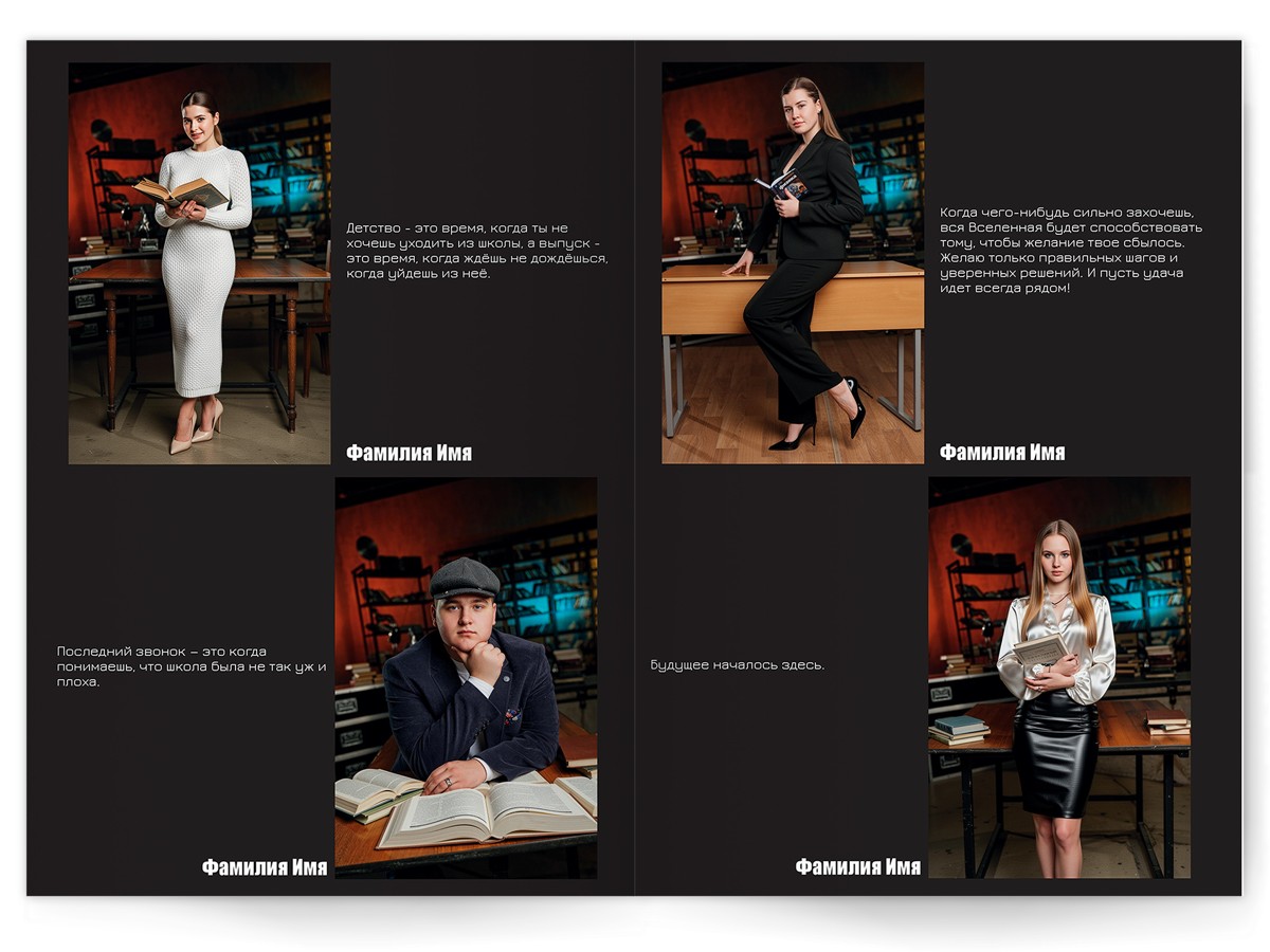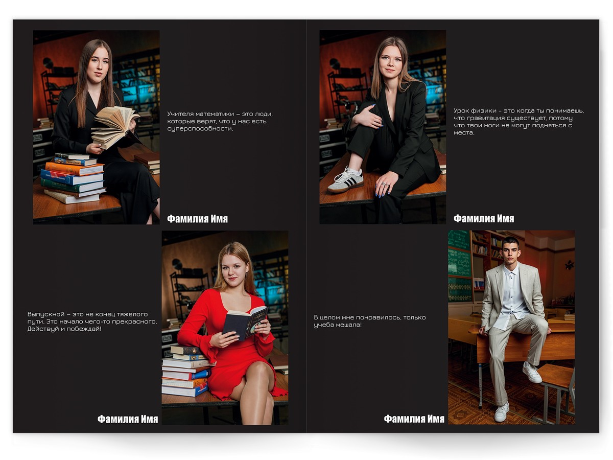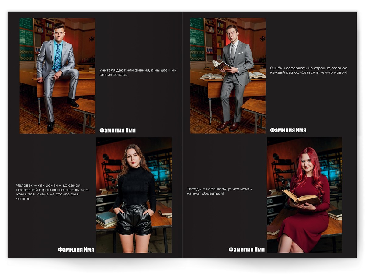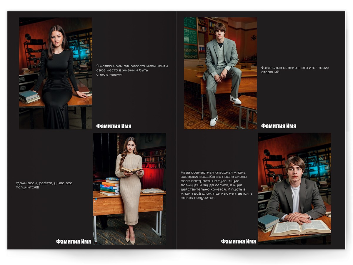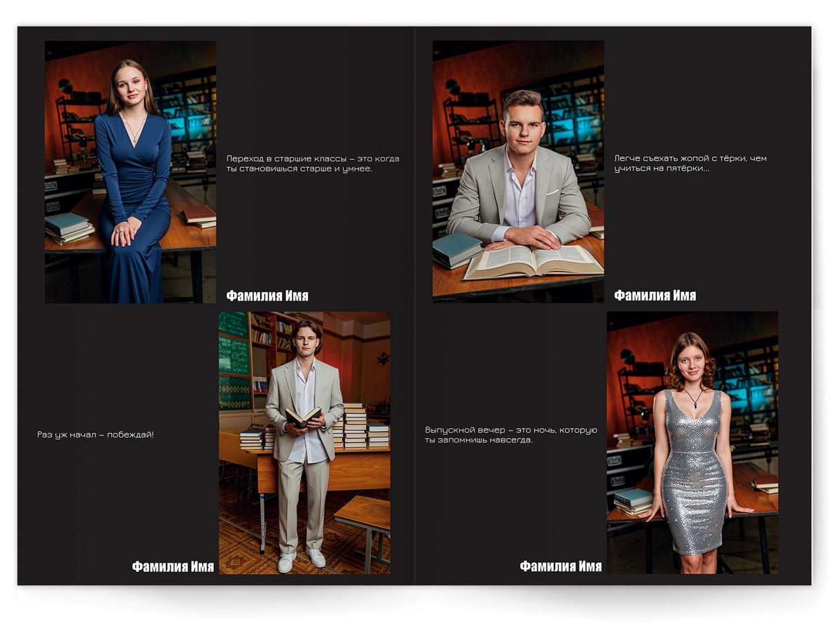 - Портреты всех одноклассников на развороте